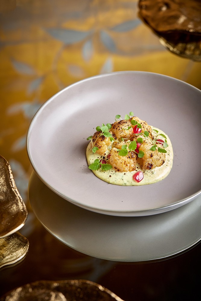 Сет откроет комплемент, которым на Востоке традиционно встречают гостей: зеленый кофе с кардамоном, шафраном и гвоздикой и финик с карамелизированным пеканом, мятой и кинзой. Ужин продолжит нежный хумус с остроумным русским «акцентом» в виде дальневосточного краба и румяными лепешками роти.