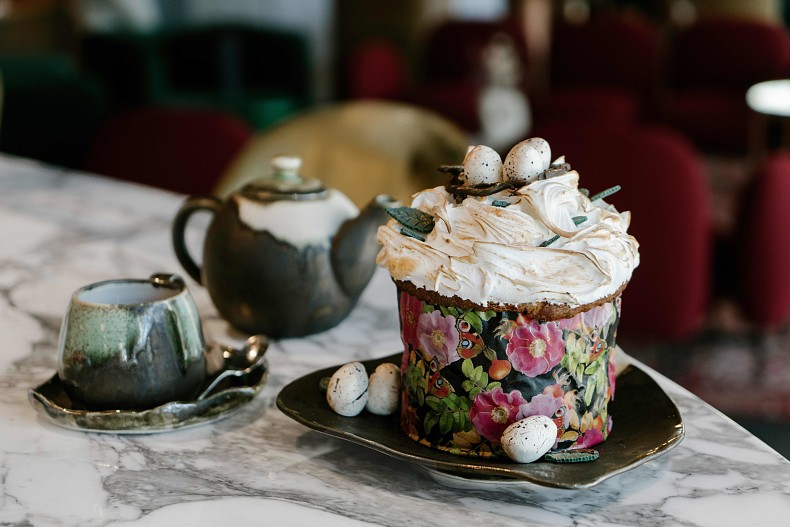 Как и модные коллекции, куличи в BURO.TSUM каждый год разные. Шеф-кондитер Юлия Посаженникова меняет не только их внешний вид, но и вкус. В сезоне 2022 сдобные воздушные куличи (700 гр. – 1400 рублей) с изюмом и апельсиновыми цукатами прячут внутри неожиданную начинку — лимонный крем с лаймовой карамелью. А обожженные ленты воздушной итальянской меренги, марципановые яйца, живые фиалки и россыпь вафельной крошки в золотом кандурине делают их не просто обязательным угощением, но и желанным подарком. С куличом из ЦУМа можно ходить в гости по самым светским семьям.