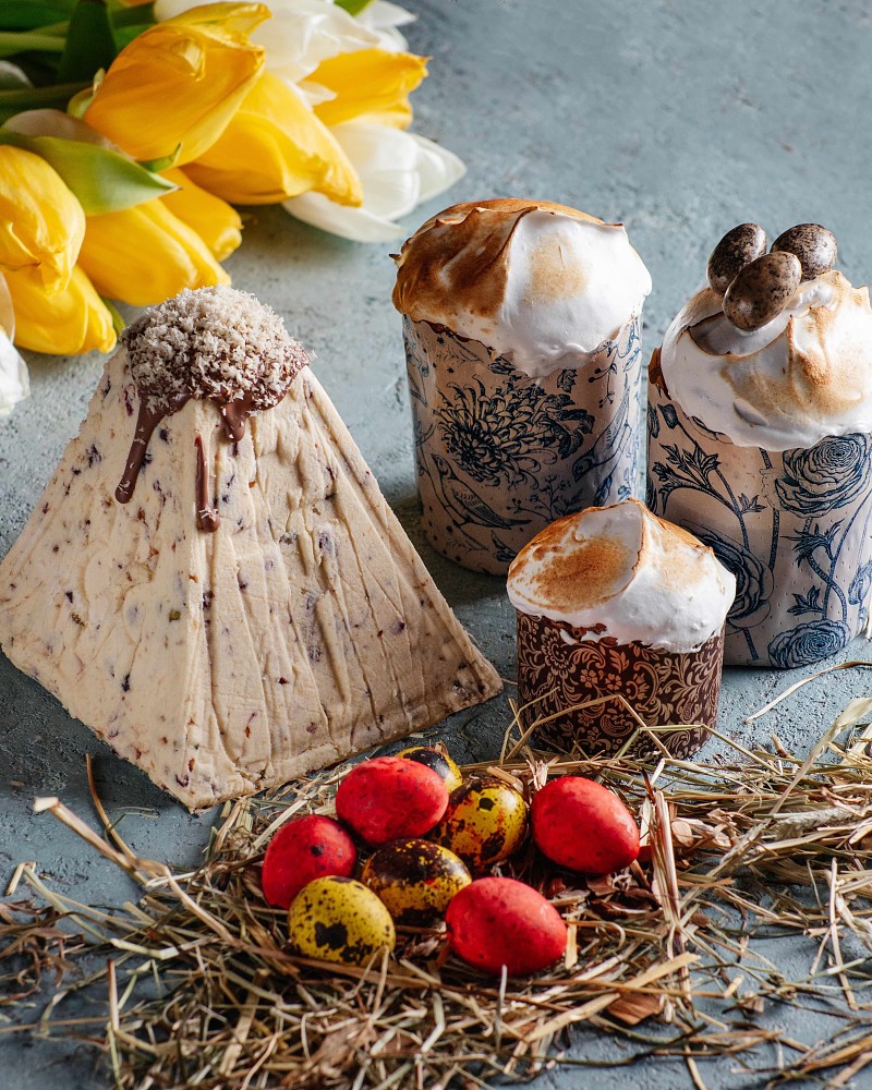 Если вы планируете остановиться в канун Пасхи в отеле, обязательно возьмите с собой домой один из двух пасхальных наборов на выбор. А если вы местный житель, то для вас будет доступна опция заказать пасхальные специалитеты на дом или оформить самовывоз.