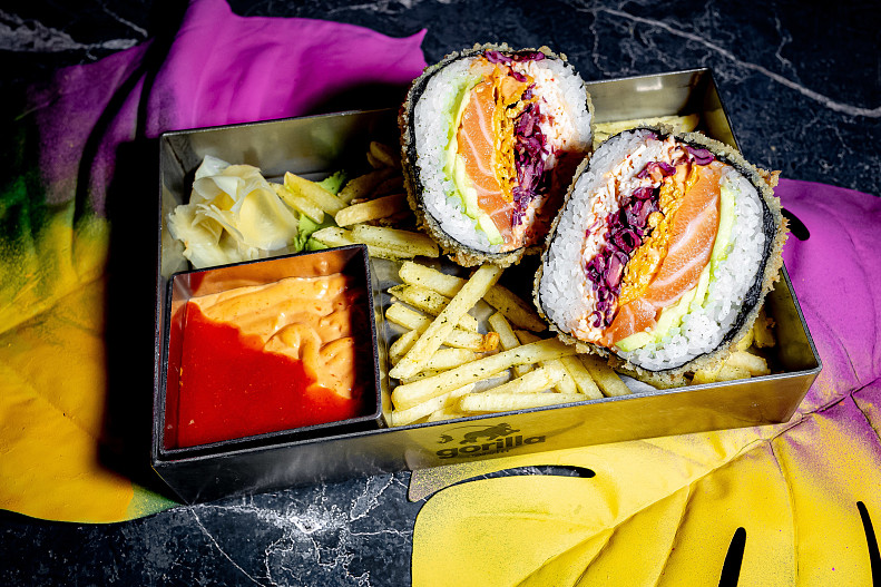 Большая часть блюд нового меню – современный взгляд на японскую кухню в сочном адаптированном на манер запада стиле. При этом, Gorilla бургер, авторские роллы и суши Никкей мирно соседствуют с классическими Калифорнией, Филадельфией, гёдза, нигири и WOK.