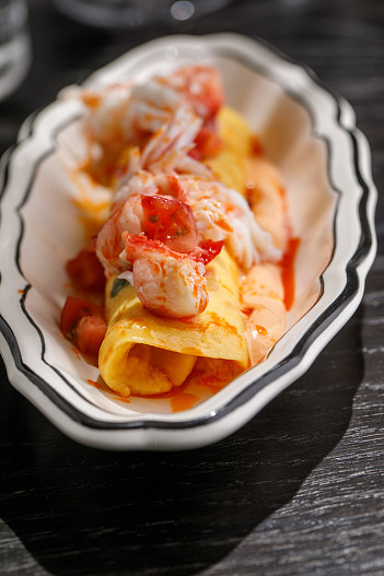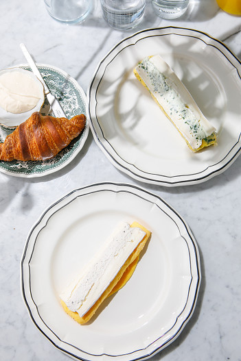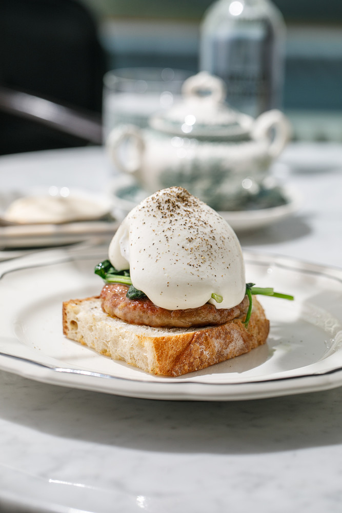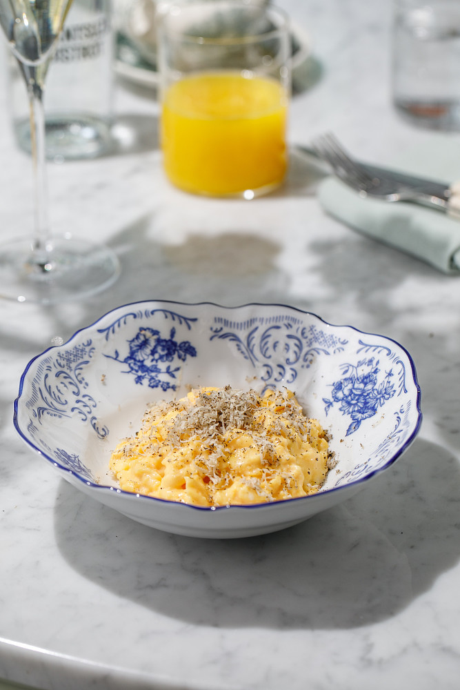 В утренние часы гостям на выбор предлагается более чем два десятка блюд, простых и понятных, но с фирменными акцентами. Омлет готовят с аристократичным крабом или же с сыром бри, мягко сваренное яйцо дополняют домашним окороком и шампиньонами, пашот миксуют с форелью и авокадо. Можно заказать нежную овсянку на кокосовом молоке или затейливую кукурузную кашу с вишней и страчателлой. Есть скремблы, сытные киши, французские тосты и хрустящие круассаны – с шоколадом, с лимонным кремом, классические. Подают утром и свежие устрицы с шампанским или игристым.