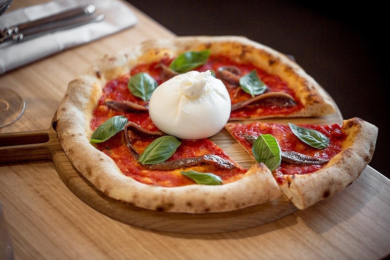 Витрина с домашними десертами и сырами на входе, демократичный зал-пиццерия и главное украшение открытой кухни – пузатая дровяная печь, одного взгляда на которую достаточно, чтобы поспешить заказать пиццу «Буррата» с анчоусами и свежим базиликом. Керамические тарелки с сицилийскими орнаментом, мандариновые деревца и роспись на стенах в стиле итальянских палаццо – на втором, более респектабельном этаже c барной зоной и VIP залом.