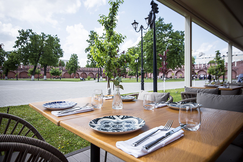 Для жарких летних дней в Bottega Italiana предусмотрена просторная веранда с плетеной мебелью, где приятно потягивать прохладное Pinot Grigio. И разглядывать посетителей тульского Кремля, в котором  с появлением ресторана прибавилась еще одна, обязательная к посещению, достопримечательность.