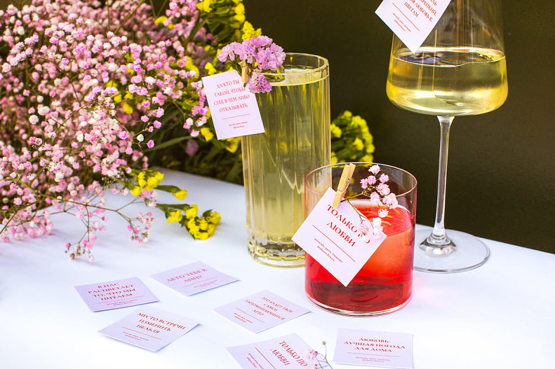Легкий Flower breezes (790 руб.) на игристом с добавлением дальневосточного саган дайля и ягод бузины будет дополнен желтой статицей. Все вместе — телепортация на летнее поле, усеянное луговой травой и цветами. Candy (750 руб.) — вихрь свежести, подчеркнутый арбузной водкой, барбарисом и кинзой. Greek negroni (650 руб.) на джине, со свежей клубникой и зефиром — крепкий, но в то же время нежный, подчеркивает долгое послевкусие статица, цветущая пышным сиреневым цветом. Самый ярко-характерный коктейль Smog lavander (850 руб.) на текиле и мескале — усиливает терпкость вкуса копченая лаванда и тонкая веточка свежей, которая украшает бокал. Кроме цветочного декора, каждый коктейль также сопровождает аффирмация — пожелание на день, которое можно забрать с собой. На некоторых карточках гостей ждет депозит на посещение Avocado Queen или букет от Why Not?.