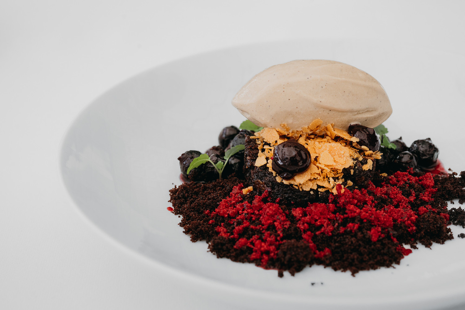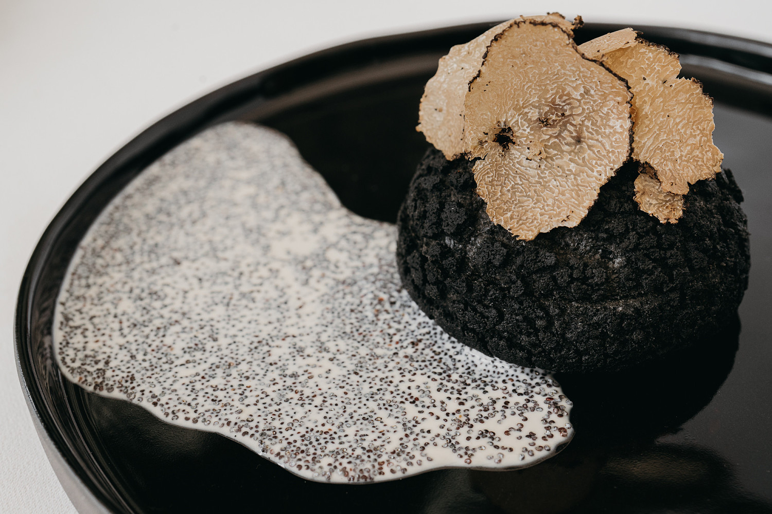 Среди закусок выделяются: свекла с кремом из козьего сыра и сорбетом из копченой свеклы, вишни и малины (1050 руб.); авторское видение карпаччо – лосось в специях с оригинальным лимонно-творожным кремом (1200 руб.); яркая холодная закуска из хрустящего артишока, фенхеля и цветной капусты с трюфельным мороженым и летним трюфелем (1150 руб.).