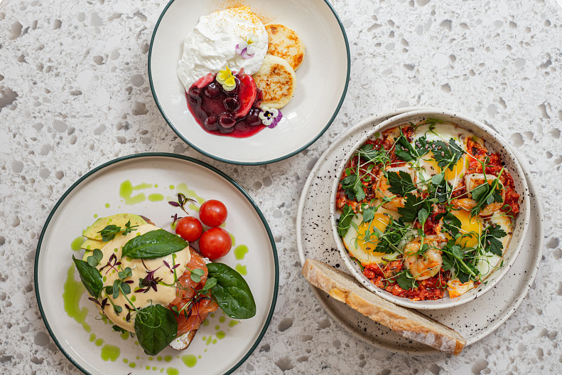 В меню – комфортная еда, за которую отвечает Артем Гуреев. Салаты, вроде клубники со страчателлой (750 руб.) или с тунцом и манго (550 руб.), зеленые и сытные боулы, паста, супы и сэндвичи, удобные для формата to go. Из интересных – с тунцом и авокадо (690 руб.), грушей и халлуми (550 руб.), лососем и гуакамоле (690 руб.). Завтраки готовят весь день – например, сырники с соленой карамелью и вишней (400 руб.), вафли «Бенедикт с лососем» (650 руб.), шакшуку с цыпленком, креветками или страчателлой (450/550/590 руб.) или гранолу на банановом молоке (350 руб.). На континентальные завтраки до 16.00 действует акция – еда и напиток за 690 руб.