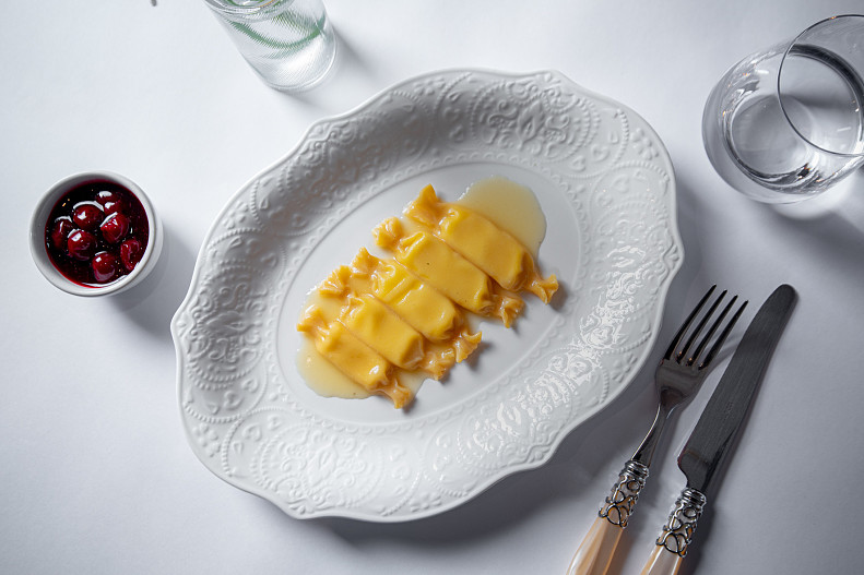 Dolci – для тех, кто среди десертов Loona с любопытством ищет все самое интересное. И теперь это Павлова – легендарная хрустящая меренга, превратившаяся в сэндвич с ванильным кремом, манго и малиной. Соперничать с которой могут только похожие на конфеты вареники с рикоттой, взбитой с ванилью и медом, и соусом из вишни.