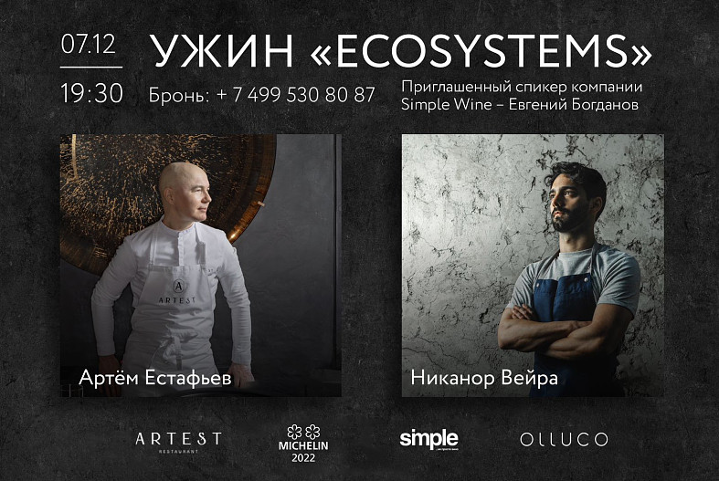 Эти идеи близки Никанору Вейра. В ресторане OLLUCO концепция разумного потребления — не пиар-тренд, а естественный ход вещей. Качественные продукты необходимо использовать разумно, тем более, что некоторые из них — настоящая гастронаходка для России. Несмотря на различие стилей, принципы двух шефов очень похожи — и они покажут это на ужине из 8 курсов. Четыре из них приготовит Никанор и четыре Артем, но на подачах они не остановятся. На один вечер в ARTEST гости смогут полностью погрузиться в атмосферу OLLUCO, ведь в гостях будет не только шеф, но и вся команда — официанты, сомелье, менеджеры.