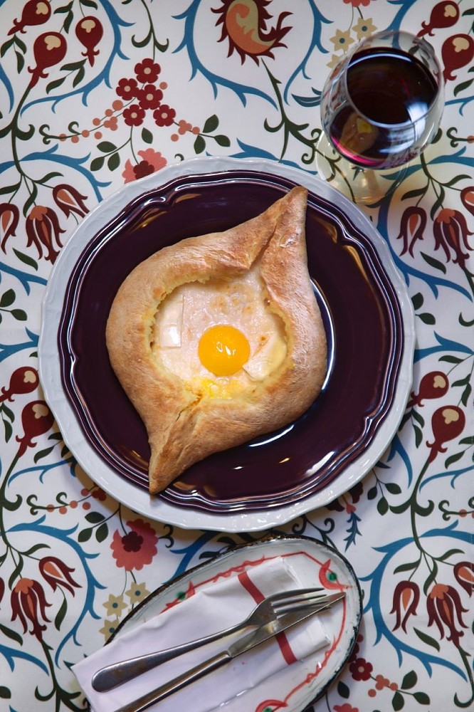 В меню — традиционная Грузия: сациви, чахохбили, чихиртма. Однако в исполнении шеф-повара Лии Табатадзе классика становится нескучной, легкой и свежей. Убедиться в этом несложно: стоит обязательно попробовать хинкали с лососем, аджарский хачапури с корочкой из дровяной печи, фирменные хачапури-вертели со шпинатом, цыпленка в имеретинском шафране с гурийской капустой и гебжалию в мятном мацони из свежесваренного сулугуни от «Бережковской сыроварни». А еще обаятельная Лия обещает кулинарные мастер-классы, на которых научит детей и взрослых делать хинкали и чурчхелу.