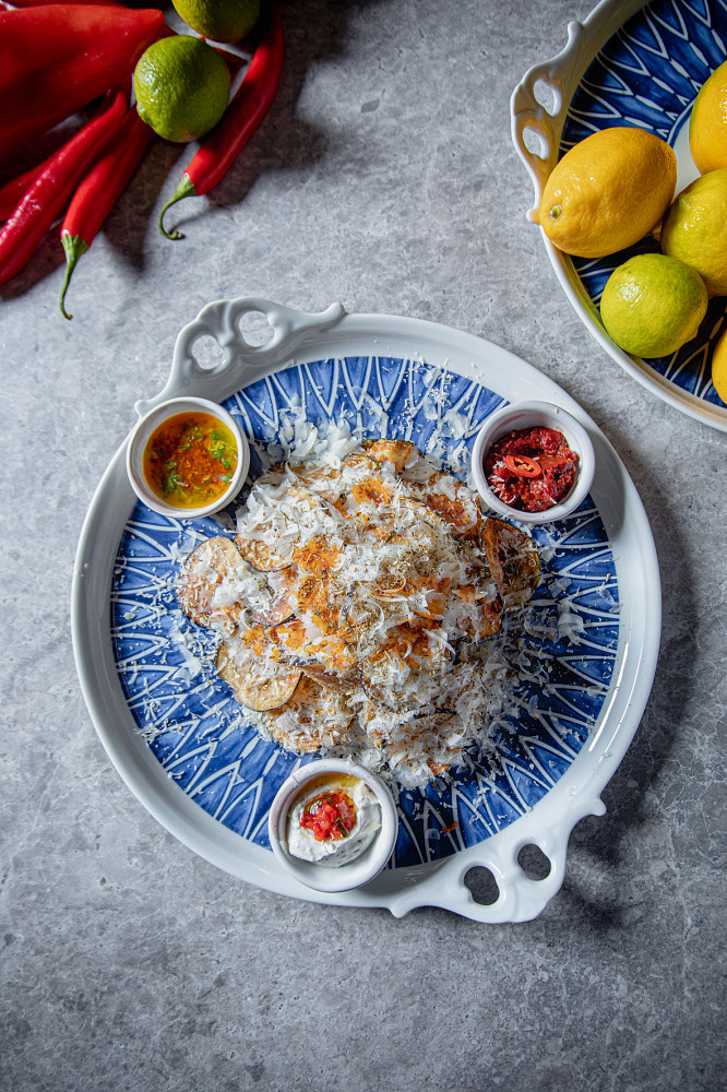 Однако у каждого «грека» свой секрет. Один вдруг удивит тонким турецким акцентом, другой прикинется итальянцем, третий даже в привычном найдет новый поворот сюжета. Как креветки в тарамасалата, пряный соус из мандаринов и можжевельника к обжаренному халуми, масала и маринованный в карри кешью в пасте с крабом или маринованные баклажаны в мусаке.