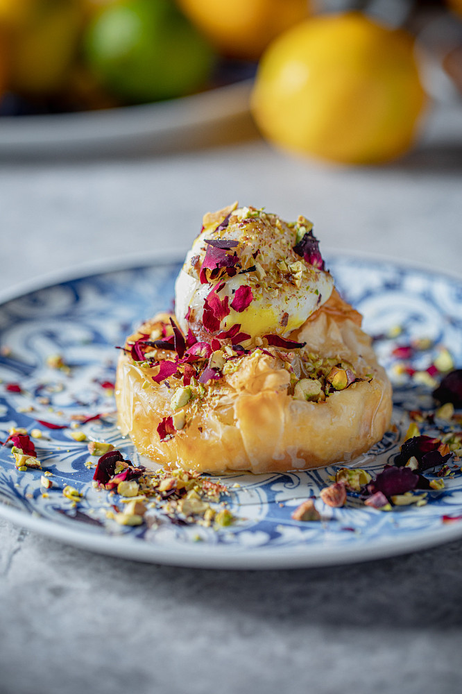 Шеф-кондитер Алена Офицерова в десертах The Greeks соединяет традиции, вкусы и смыслы. Пахлава с фисташками, грецким орехом и медовым сиропом с пряностями – пока еще классика. Бугаца на песочной миндальной основе с корицей, заварным кремом и турецким мороженым с фисташками – уже вариация на заданную тему. А мусс с лавровым листом в античных «торсах» с карамелизованными оливками – взгляд на еду сквозь призму искусства.