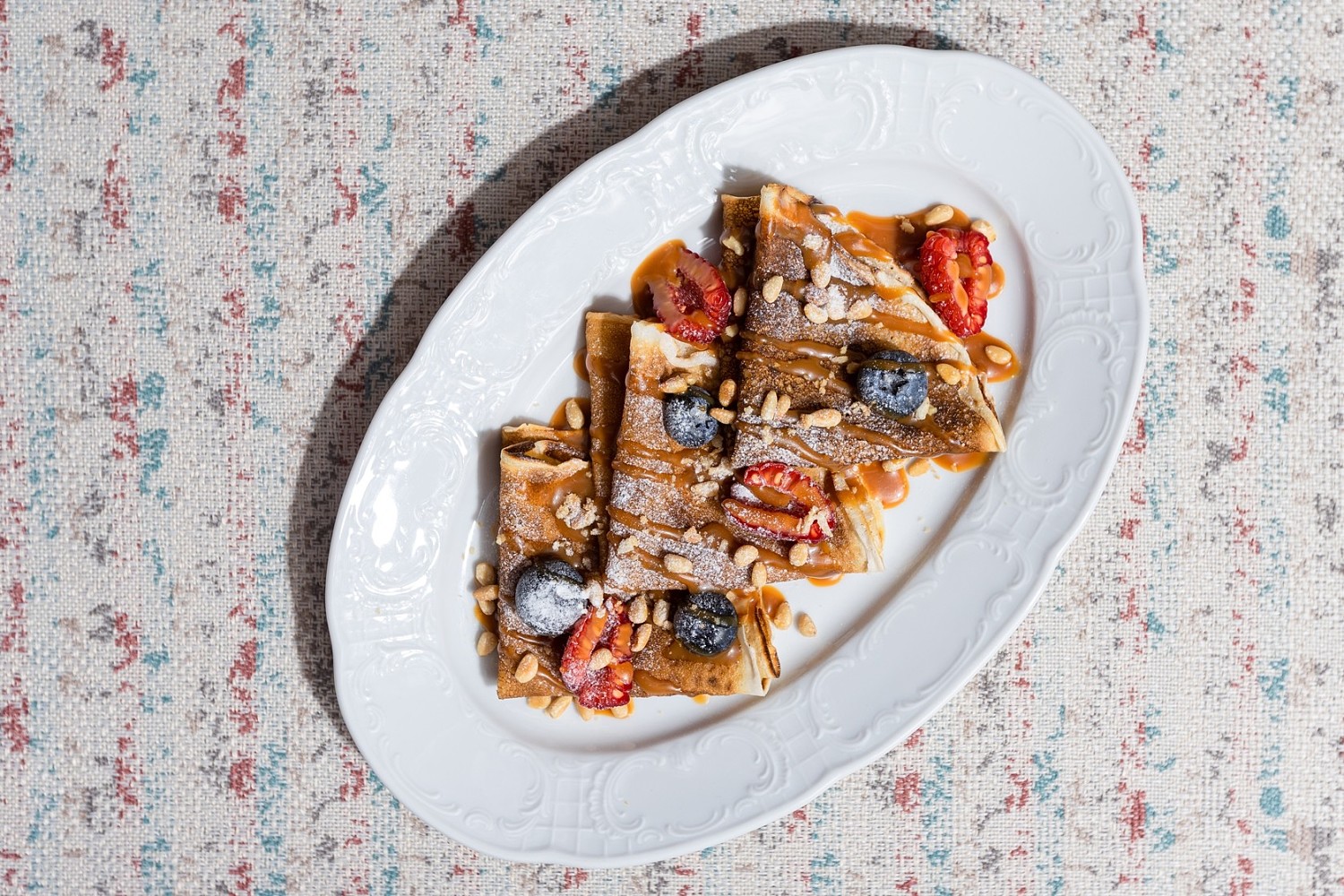 Любители сладких сочетаний оценят большую блинную башню с ягодным кули или фирменные Crêpes à l’italienne с кремом «Тирамису», криспи шоколадом и какао по рецепту прямиком из Италии. Остановить выбор на чем-то одном крайне сложно, да и стоит ли?