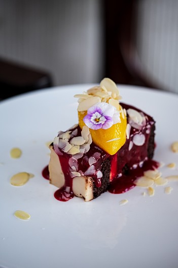 На десерт можно заказывать шоколадный торт с черной смородиной и яблочный штрудель с малиновым сорбетом.