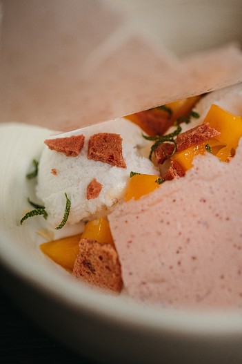 От шеф-кондитера Марии Федоровой будет два десерта — авокадо кейк с меренгой и кешью и легкий, ни к чему не обязывающий сорбет из кокоса с манго и розовым перцем.