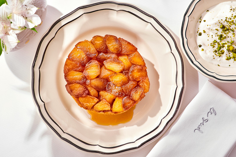 Любителям десертов придется по вкусу фирменный Тарт Татен из сочных яблок с нежным кокосовым сорбетом.