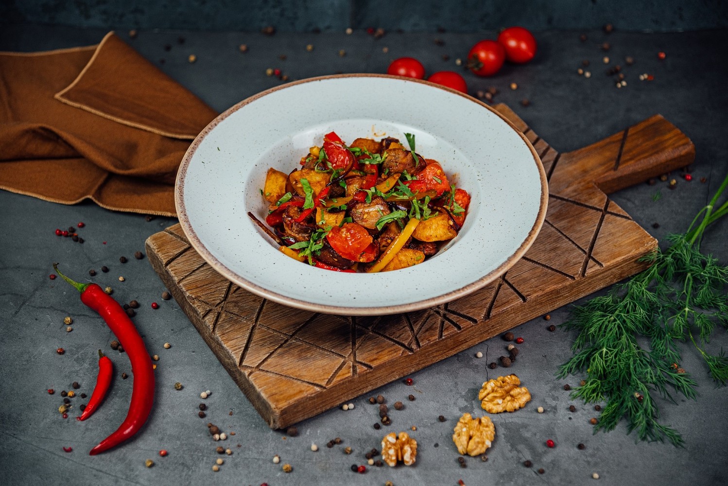 А еще ему не чуждо чувство гастрономического юмора. Если в Италии есть пицца «Маргарита», названная именем королевы, то почему не придумать рагу из куриного филе с овощами и сулугуни под крышкой из хрустящего теста и не дать ему грузинское имя Маргалита, означающее «жемчужина»?