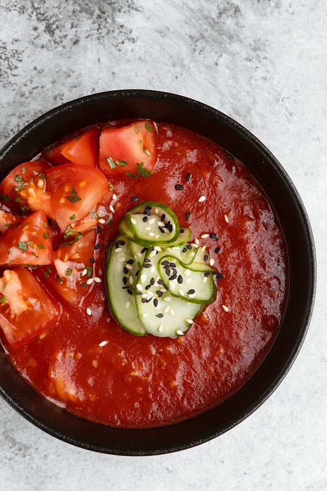Первый, версия гаспачо на японский лад – идеальный для жары томатный рамен (610 руб.), где за основу взята лапша, а вкус усилен соусом цую, мятой и кунжутом. И пикантный «Хияши Чука» (590 руб.) на бульоне из хияши с куриным яйцом, водорослями нори и перцем чили.