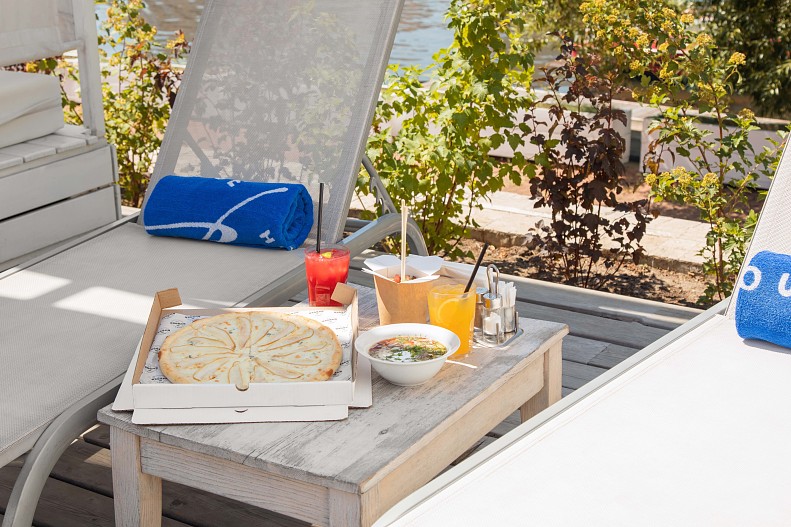 А для любителей позагорать есть целый пляж с двумя бассейнами Shore House Beach. Чтобы ощутить себя на морском побережье, прием солнечных ванн на лежаках под большими зонтами рекомендуется чередовать с погружением в прохладу кристально чистой воды. В жаркий сезон бассейн работает ежедневно с 10:00 до 21:00. Курортную картину дополняют катающиеся на реке вейк- и флайбордисты.