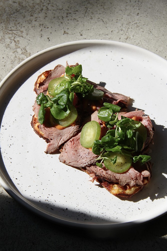 Позавтракать приготовленной на рыбном бульоне со сливками пшенной кашей с копченым кижучем и унаги. Начать день с картофельных вафель – с ростбифом и соусом из запеченных перцев, страчателлой и трюфелем, икрой горбуши и сливочным кремом.