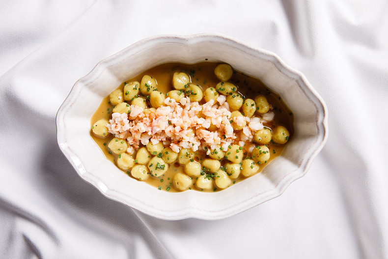Cтоит выбрать один из французских супов: елисейский суп или луковый суп. На горячее – одну из двух паст: ньокки с креветкой и тальятелле с трюфелем или же обратить внимание на рыбные и мясные блюда: утиная грудка с лавандой и капустой; филе сибаса с пюре из пастернака.