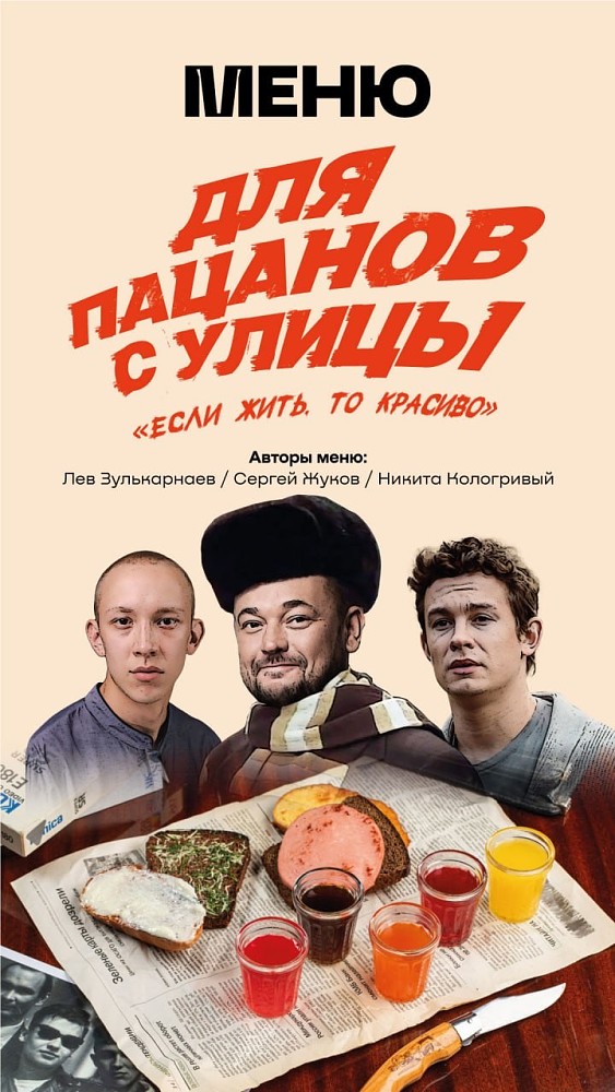 С 19 декабря гости смогут попробовать игровое «Меню для пацанов с улицы», где актеры вместе с Сергеем Жуковым замешали свои авторские настойки.