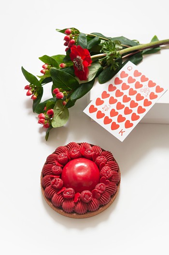 - малиновый тарт с фисташковым франжипаном и шоколадными сердцами
