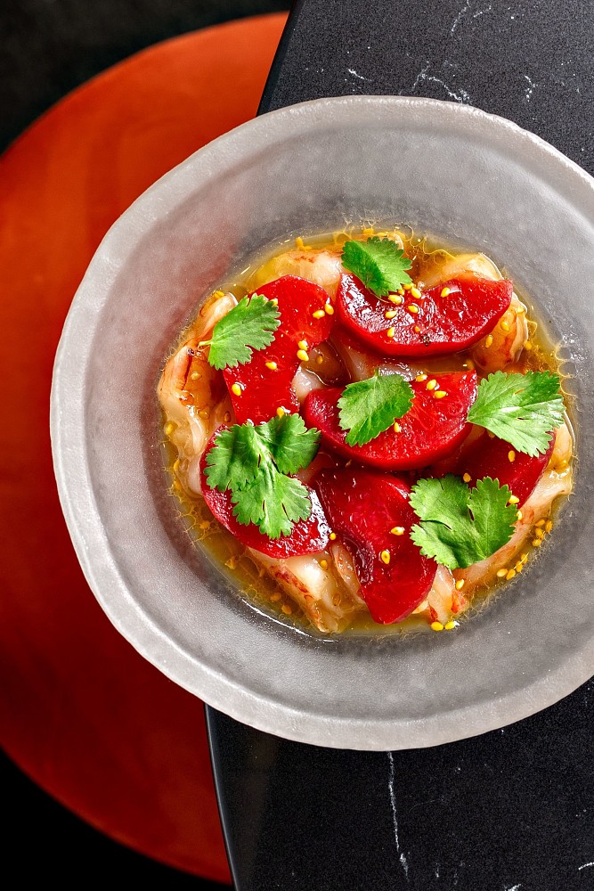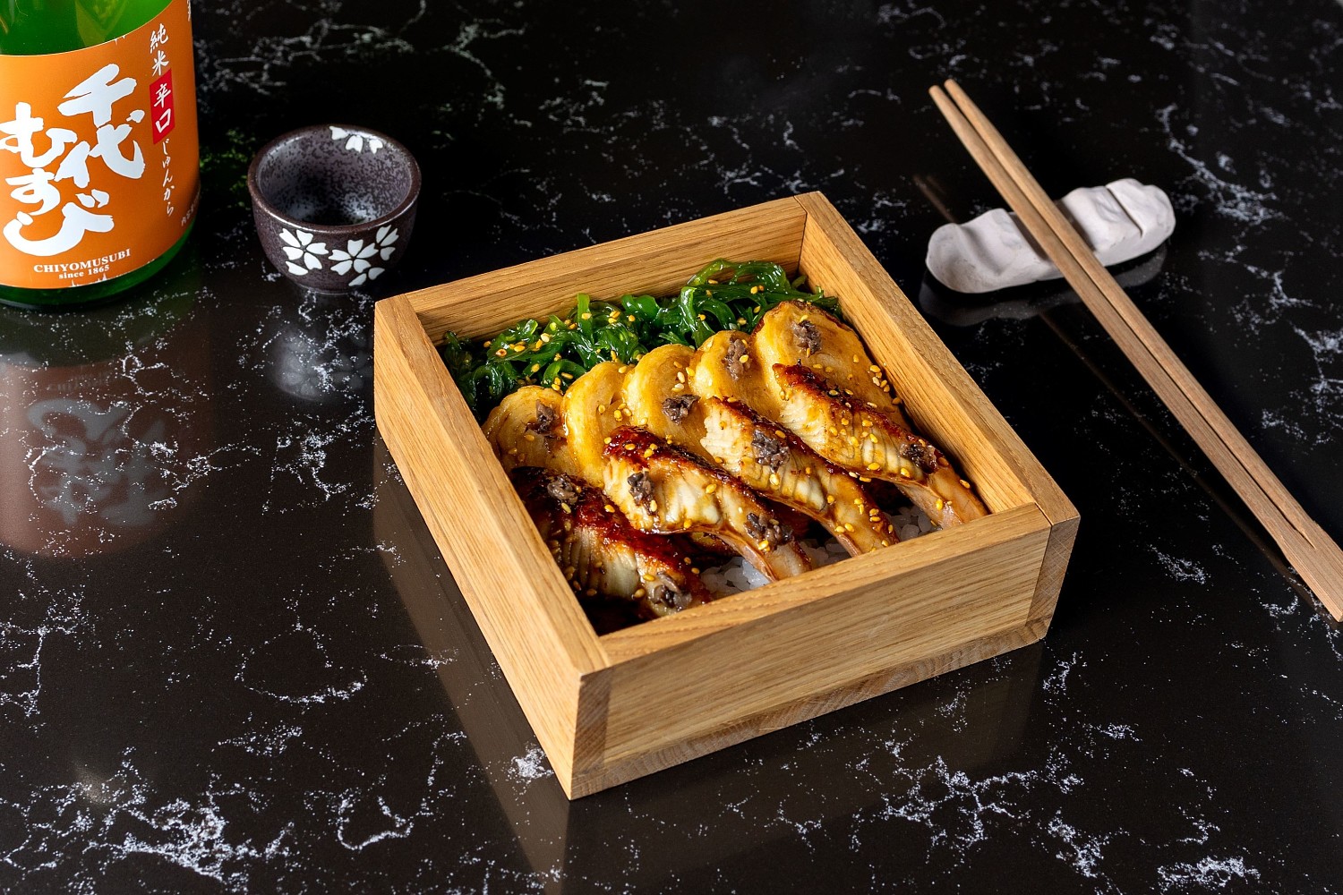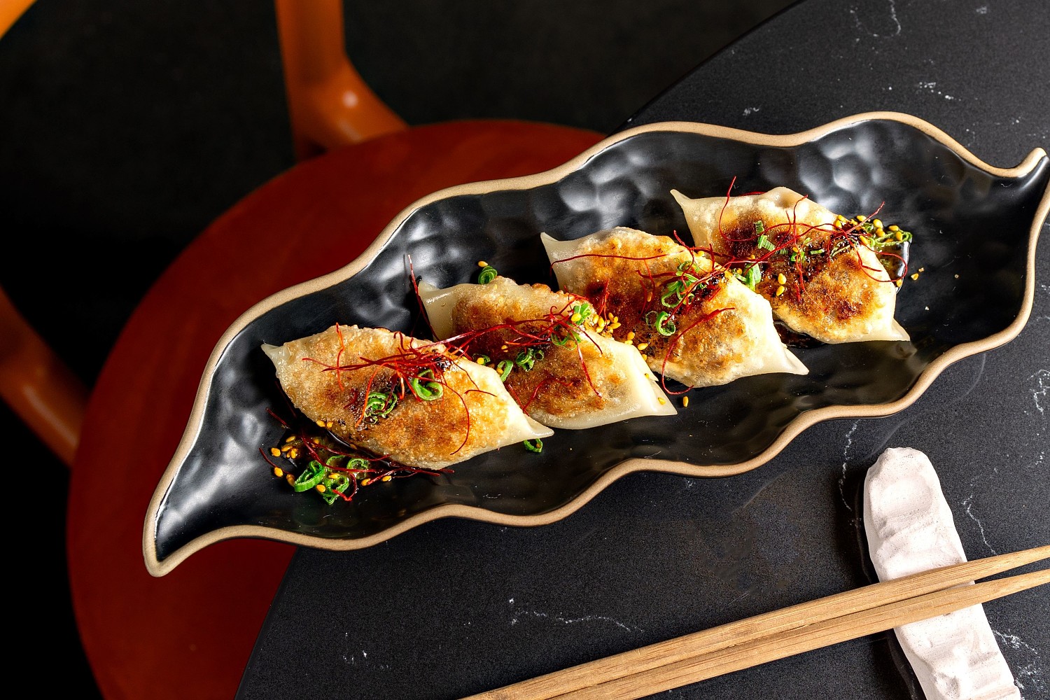 Татаки говядина с соусом нори: тончайшие слайсы сырой говядины под пикантным соусом; Гедза с говядиной: традиционные японские пельмени, пропаренные и обжаренные до хрустящей корочки; Сэндвич кацу с цыпленком с мятым авокадо и кунжутным айоли; Чираши с угрем: разновидность поке из риса, угря, омлета тамаго и водорослей чука; Изысканный красочный севиче из лангустина со сливой; Легкая закуска бобы эдамаме в чили и с солью и другие позиции.