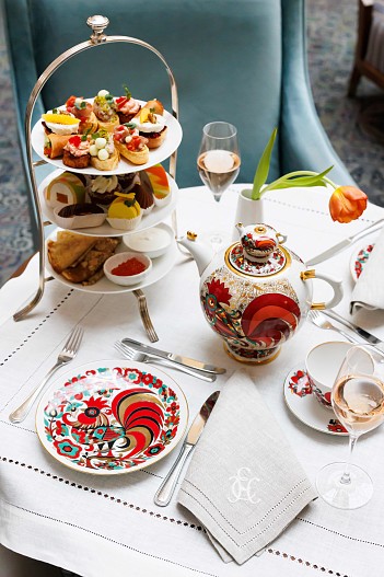 В кафе «Мезонин» в Гранд Отеле Европа тепло поддерживается традиция послеполуденных чаепитий. Этой весной шеф-повар Денис Соболев представил новое меню, а изящное накрытие изо льна для церемонии создали мастера петербургского бренда LAVR, который возрождает авторскую вышивку и рукоделие, вдохновившись работами мастерской Троице-Сергиевой Лавры.