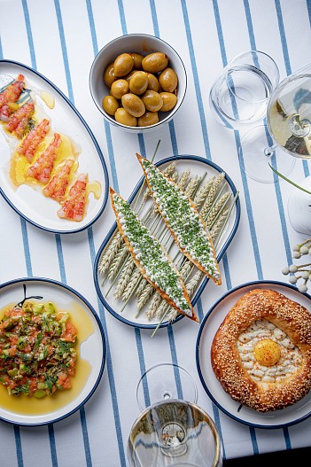 Греческие продукты ложатся в основу и барной карты Лизы Чупровой. Инжир, персики, эвкалипт, абрикосы, метакса, самбука, домашний анисовый ликер – из яркой палитры новых вкусов рождаются новые сочетания. Фирменная «Афина» в ракушке – водочный сауэр с грушей и белым персиком. «Миконос» - аутентичный твист на олд фешн – бурбон со сливовым дистиллятом и грейпфрутом. Греческая версия спритца – душистая «Аврора» с анисом и яблочным ликером. И колоритные дижестивы: «Олимпия» на водке с амаро, кофе и гвоздикой и «Антонопулос» на бурбоне с имбирем и попкорном. Безалкогольные, горячие, лимонады – в каждой главе свои открытия. Можно попробовать чай, похожий на беллини, или освежиться алоэ и эвкалиптом.