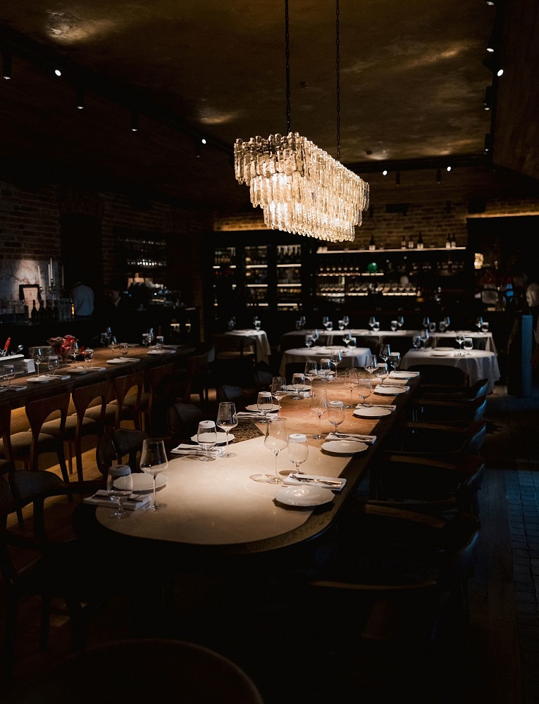 Настоящие гурманы заняли места вдоль открытой кухни, любуясь работой поваров у трехуровнего кастомного гриля и чугунных дровяных печей. А после баскского чизкейка с горгонозолой и шоколадного тарта с перцем Andaliman продолжали вечер в баре Padron, рассматривая изображенные на плитке сюжеты сквозь алые рюмки душистой жинжиньи.