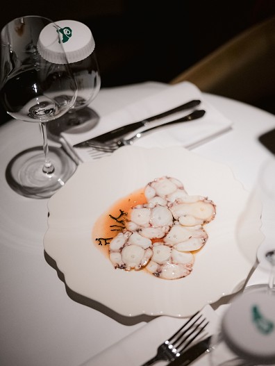 Гастрономическими звездами этого вечера стали: карпаччо из осьминога с сальсой из яблок, лайма и сельдерея, приправленное водорослями кодиум, которое пахло морем, словно вечер проходил на берегу Бискайского залива; украшенный «цветком» соленого чурроса тартар из говядины, золотистые пирожки-эмпанада из ягненка со сладким соусом педро хименес, кролик с шоколадом и тыквой по рецепту, привезенному Адрианом Кетгласом с родной Майорки, и другие.