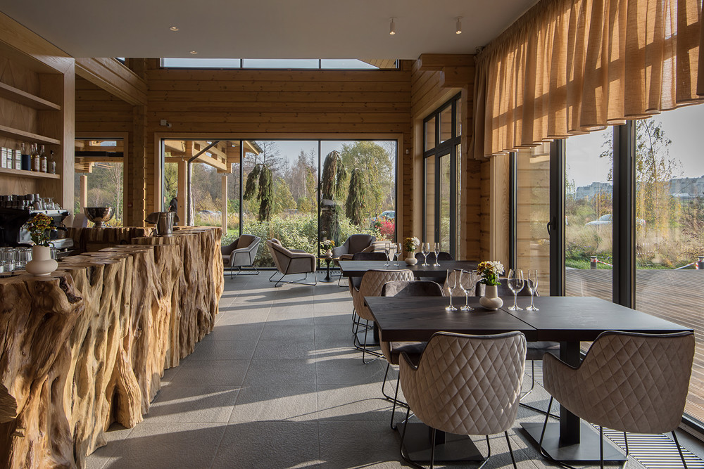 Ресторан Tsarevna располагается в банном комплексе Zavidovo SPA Village на курорте Завидово с видом на реку.