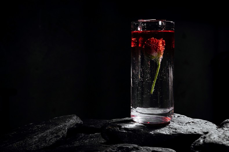 О прекрасной девушке, найденной в мраморном саркофаге полвека назад, говорят, что румянец ее был нежен как роза, а красоту ее хранила прозрачная вода. И Manul посвящает ей свой волшебный напиток, свежий и ледяной, где джин откликается вкусами сибирской степи, брют покалывает иглами пузырьков, а лимонная мята нежно обжигает. И роза, застывшая во льду, напоминает о румянце сибирской принцессы, как и алая конфета из белого шоколада со вкусом каркаде и розовых лепестков.