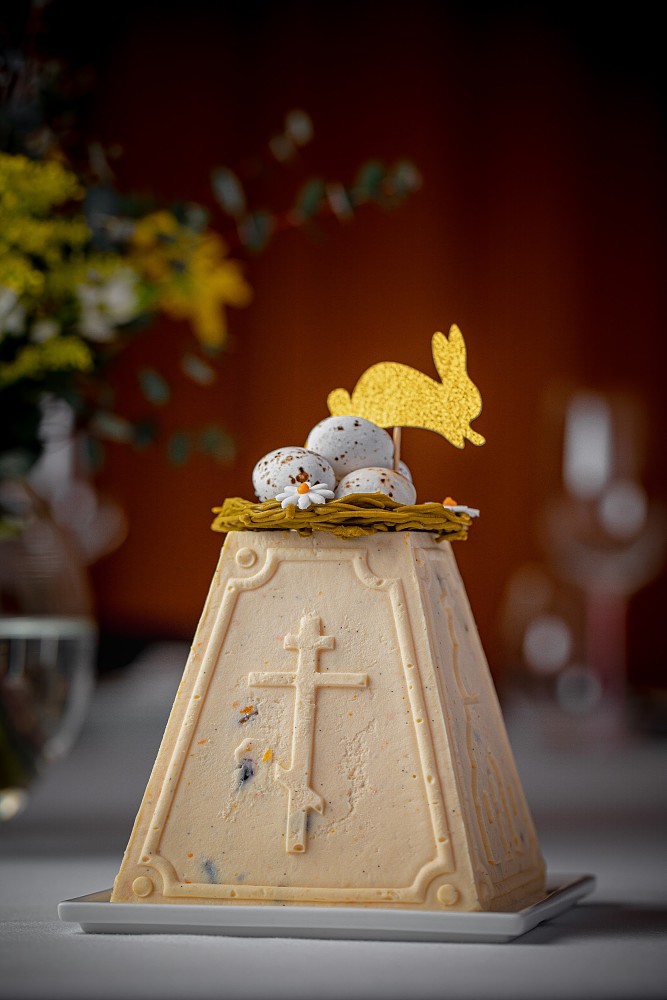 • Творожная пасха с цедрой апельсина и лимона и цукатами. Традиционное блюдо всегда присутствует на столе в день Пасхи наравне с куличами и крашеными яйцами.