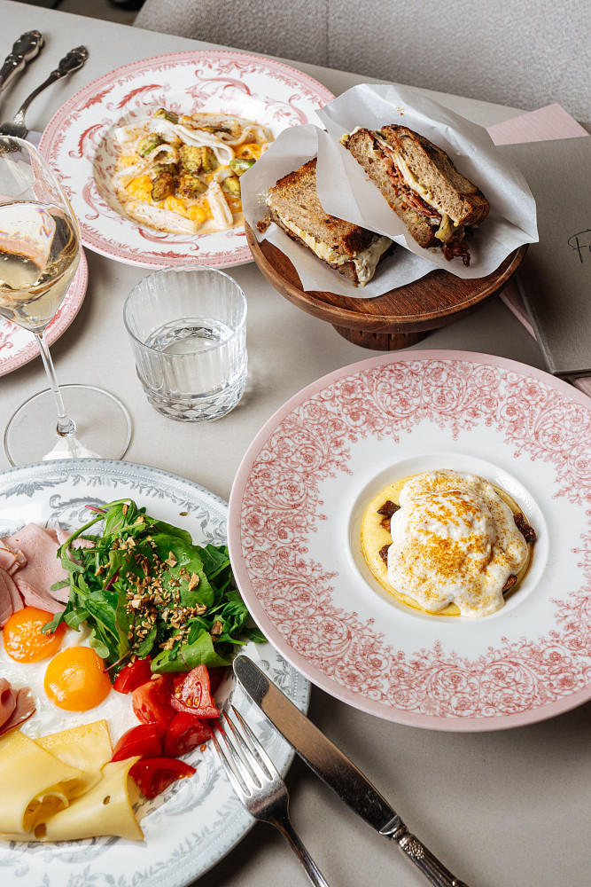 Интерьер — панорамные окна, историческая кирпичная кладка и минимализм в теплых оттенках. В меню — comfort food на каждый день, европейская и паназиатская классика: паста с морепродуктами, угорь с трюфелем на рисе, римская пицца. Завтраки подают до трёх дня, и к ним всегда можно заказать игристое. Авторские десерты от Наиры Соседовой стали визитной карточкой: чизкейк «Мона Лиза» или мусс «Ловец Снов». Хозяин проекта Алексей Мочнов, более двадцати лет в барной индустрии, лично создал коктейльную карту и подобрал вино.