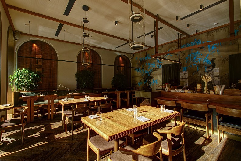 Ресторан про внутреннее: про внимание к нюансам, которые обычно остаются за кадром. Inner – ресторан о личном. О том, что ценно, но не видно, важно, но скрыто. О воспоминаниях, чувствах, эмоциях. Об умении не только видеть красоту, но и ощущать ее. Название проекта говорит само за себя. Интерьер Евгении Ужеговой собран как тонкая метафора — фактурное стекло, керамика с неровным краем, дерево, вырезанное словно вручную. Пространство делится на три зала: светлый первый, камерный второй и пекарню, похожую на монастырскую трапезную.
