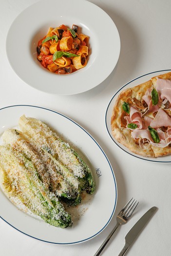Tondo — новое открытие команды La Biga: современная Италия, собранная из деталей и акцентов. Сердце проекта — пицца Tonda Romana: тонкое тесто на предферменте, раскатанное в два этапа, с начинками, которые не встретишь в обычной пиццерии: от запечённой тыквы с бычьими хвостами до соле мио с мортаделлой и трюфельным пате. На кухне — живой огонь: угольный гриль занимает почетное место. Здесь подают стриплойн, хрустящего цыпленка, запеченные овощи и артишоки в соусе cacio e pepe. Лазанью собирают прямо у стола, паста и хлеб — домашние. Сочетания — от мальтальятти аль форно с бычьими хвостами до спагетти с лангустинами и кальмаром.