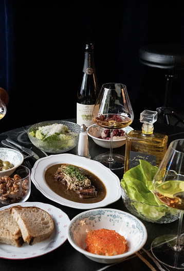 В коктейльной карте Павел Шитов собрал напитки трёх эпох: XIX, XX и XXI века — спритц с ревенем и крапивой, барбарисовый сазерак или «Петербургский пунш». В меню Ильи Тена — оливье с языком, рыбник с треской, пельмени с крабом и бульоном, тартинки и расстегаи, возвращающие к вкусам ушедшей эпохи.