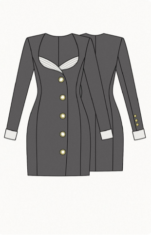 Maison EZZE создал новый образ, отражающий характер Sartoria Lamberti — современный, уверенный, безупречно выверенный. Силуэтное платье из черной костюмной ткани дополнено шелковой драпировкой цвета айвори в области декольте и на манжетах. Контраст фактур делает образ легким, но собранным, а мягкий блеск шелка дарит ему невесомость.