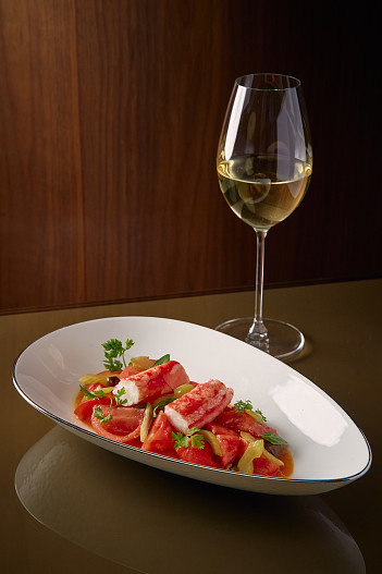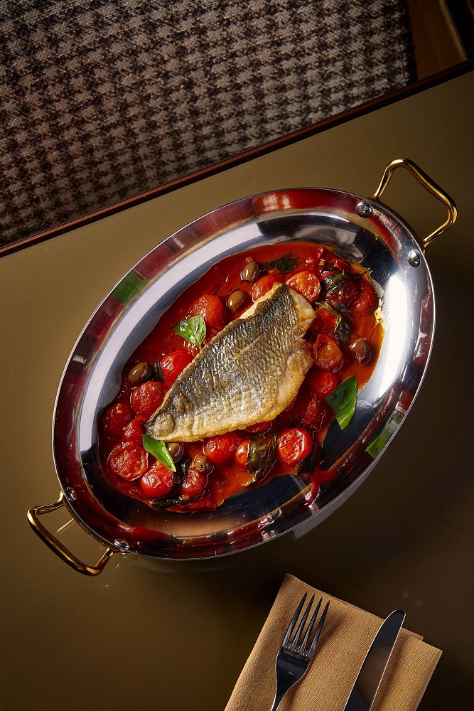 Меню открывается закусками, в которых простота формы сочетается с глубиной вкуса: артишоки на гриле с оливковым маслом и сушеными томатами, куриный паштет с фуа-гра и тартар из говядины с хрустящим картофелем фри. Морская линия представлена крабом с авокадо и сальсой пепероната, крудо из сицилийских красных креветок с мандаринами и страчателлой, а также карпаччо из тунца с тапенадом из вяленых томатов.
