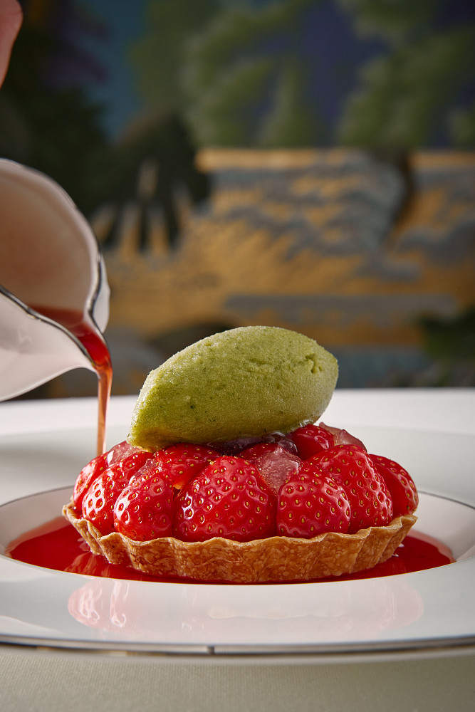 Завершают меню десерты, каждый из которых звучит как самостоятельная история: фирменный медовик Stella, вишневый пай с мороженым Hennessy, тарт татен, ванильно-меренговый десерт, клубничный тарт, сочетание каштана и айвы и «Яблоко Рене» с бергамотовым ганашем и томленым яблоком.