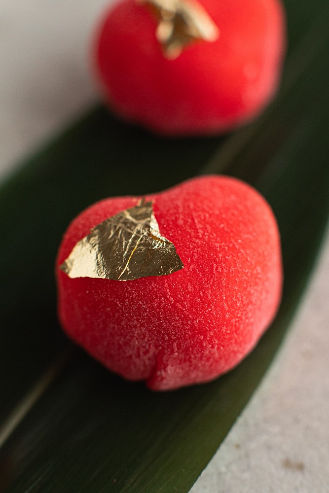 В День Всех Влюбленных в ресторане каждый гость получит в подарок десерт в форме сердца — моти с сырным кремом, ягодной сердцевиной и тонким золотым напылением.