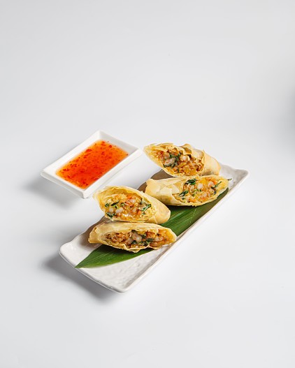 Спринг-роллы представлены с тремя начинками на выбор: овощи, курица, креветка. Каждый обернут в буквально невесомое рисовое тесто, обжаренное до хрустящей золотистой корочки. Блюдо отлично сочетается с соусом «Сладкий чили», в котором гармонируют сладкие и острые ноты.