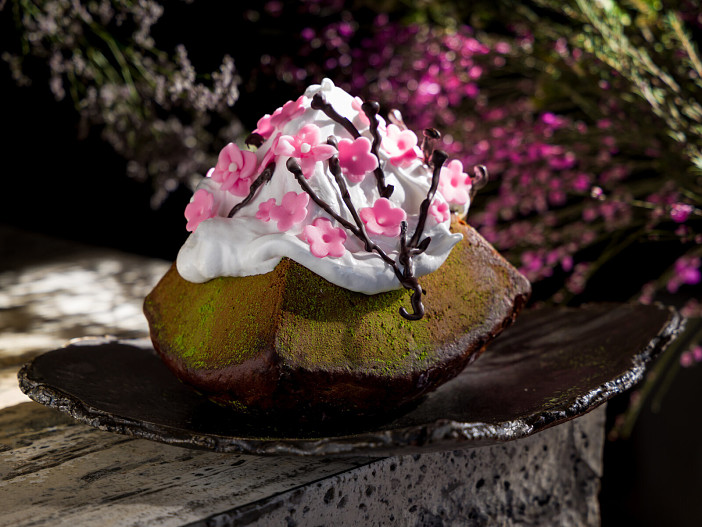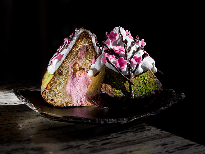 Кулич в форме горы Фудзияма в цветах сакуры и милые куличики в виде кукол кокэси — Пасху в ресторане Ikura отмечают с вниманием к московским традициям и любовью к символам Японии.