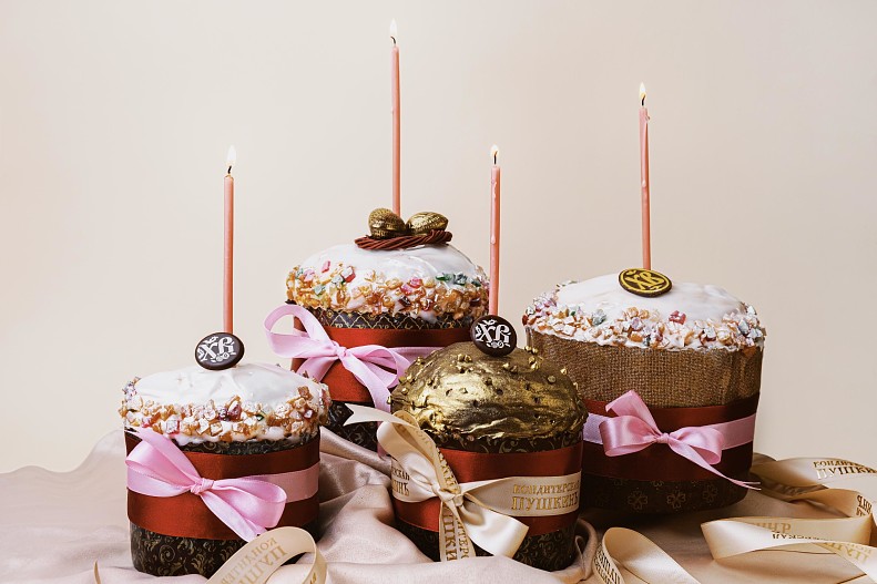 Уже сейчас в легендарной кондитерской «Кафе Пушкинъ» и «Кафе Пушкинъ у фонтана» в ГУМе можно оформить предзаказ на сладости к празднику, достойные не только семейного стола, но и коллекции музея искусств. В ассортимент вошли традиционные куличи с разным наполнением и в разных размерах — классические, с кремовой начинкой, а также в куполе из молочного или белого шоколада, расписанные золотыми узорами в стиле императорского барокко.