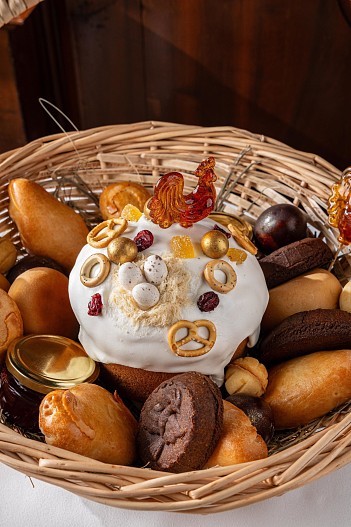 О том, чтобы пасхальный стол был по-настоящему щедрым и праздничным, ресторан ЦДЛ позаботился заранее — можно заказать целую корзину с куличами, яйцами и пасхальными пряниками в праздничной упаковке с бантом. Корзина станет отличным вариантом подарка и украшением праздничного стола.