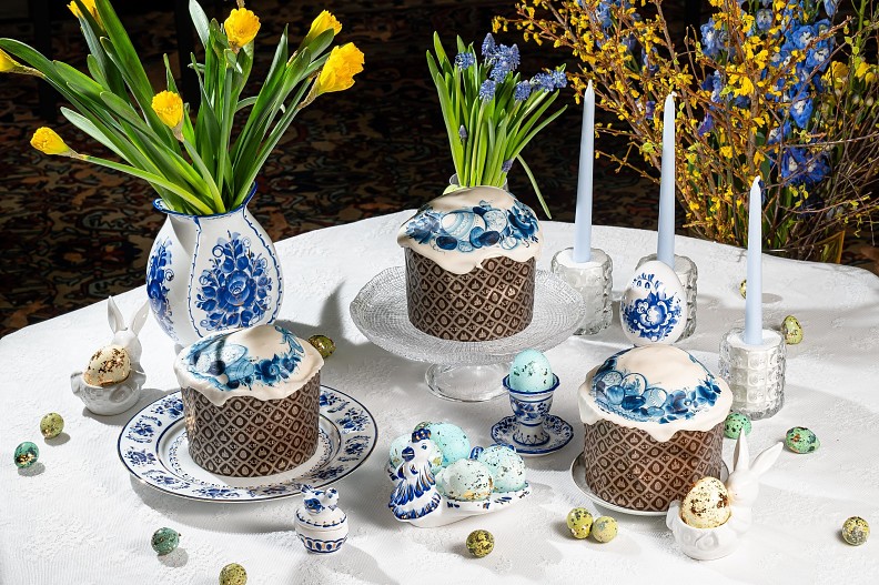 Пасхальная коллаборация бара «Шаляпин» и Объединения «Гжель»: лимитированная серия куличей в традиционной ручной росписи