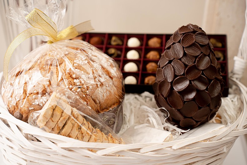 Итальянский панеттоне станет настоящим украшением праздничного стола, а пасхальная корзина с панеттоне, кантуччи, конфетами и шоколадом ручной работы — отличной идеей подарка друзьям и близким.