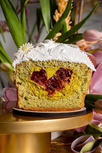 В «Восходе» есть сразу несколько вариантов праздничного угощения: от «Царского» кулича с шафраном, белой черешней и цитрусами до безглютеновой версии с фисташкой и малиной.