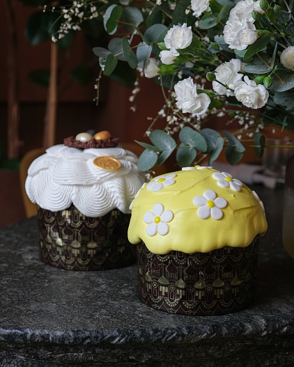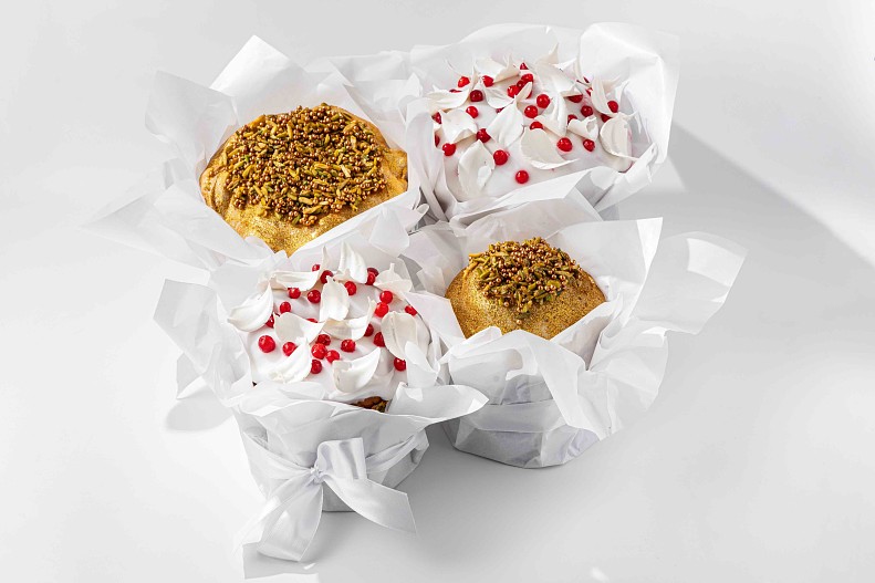 В этом году бренд-шеф Андрей Жданов превращает кулич в гастрономический десерт с акцентом на текстуры, интересные вкусовые сочетания и эффектный декор. В основе обоих вариантов — сдобное тесто, выложенное слоями, что придает куличам особую воздушность и выразительную структуру.